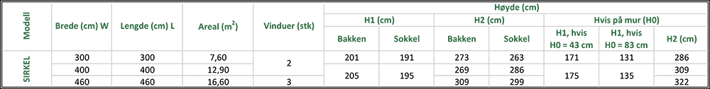Spesifikasjoner – Sirkel Drivhus / Orangeri