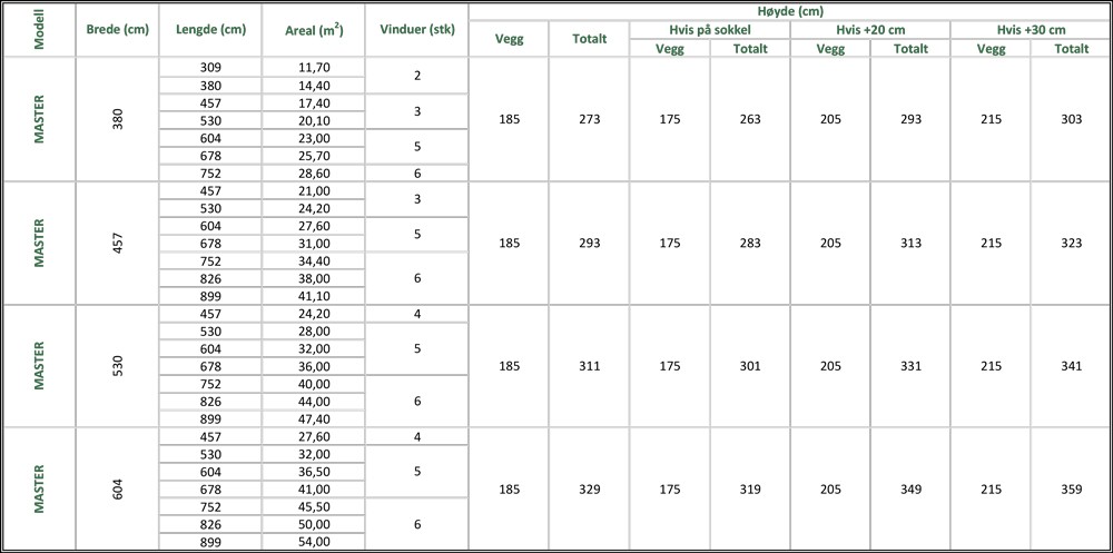 Spesifikasjoner – Romslig Drivhus Master