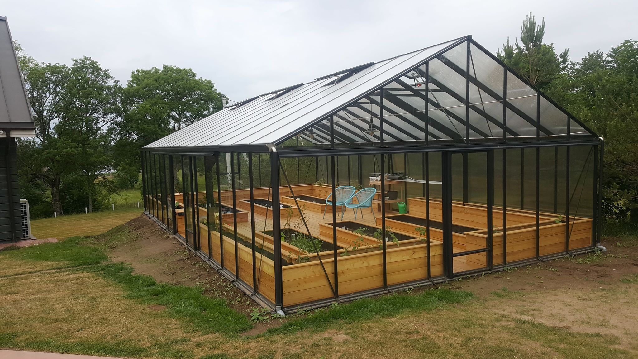 Klar og opal kanal polykarbonatbelegg på drivhus – MASTER. Foto Uteluksus