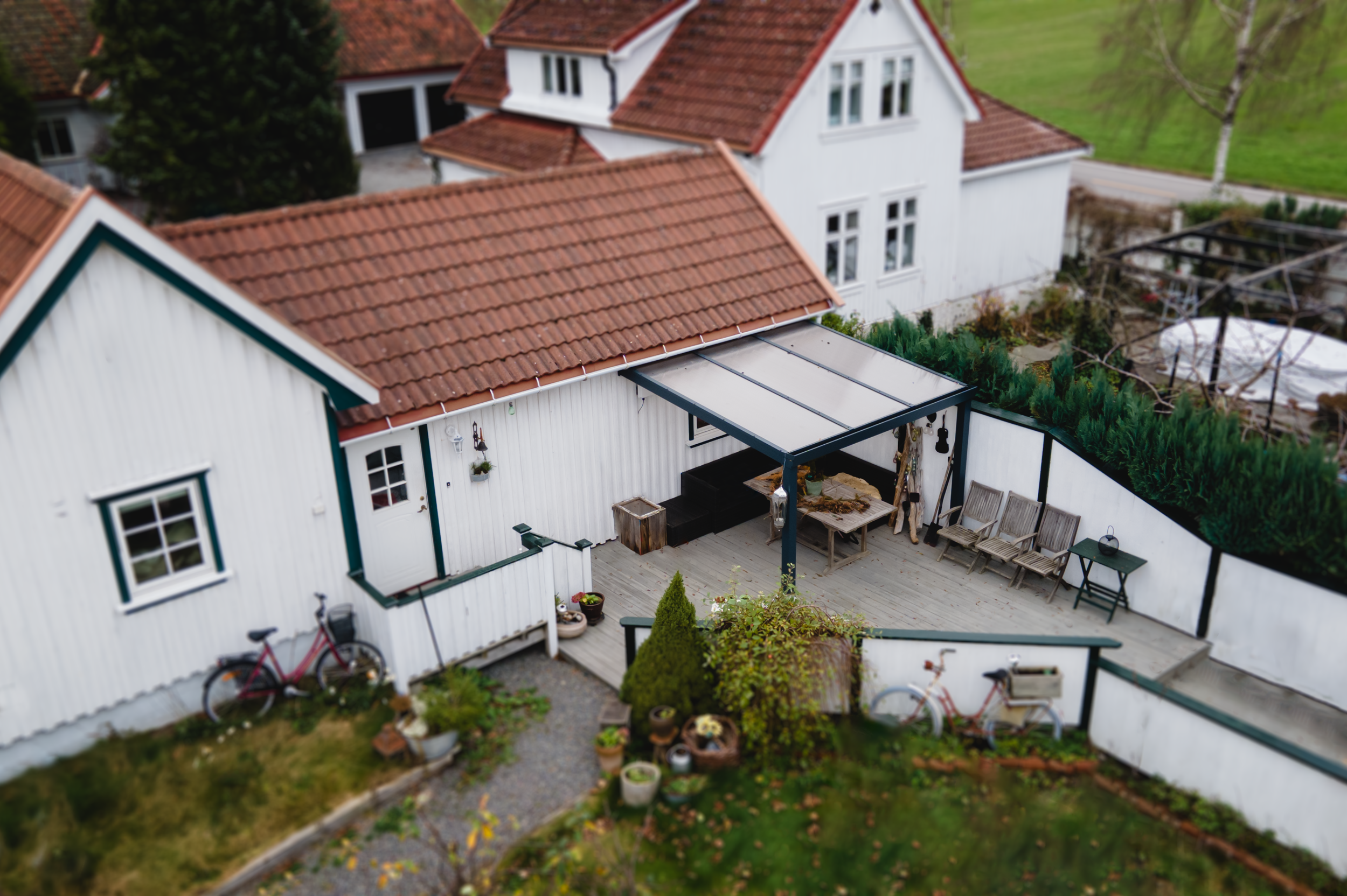 - Terrassetaket kan når som helst gjøres om til en veranda eller hagestue med glidende eller fast segmentsystem med dekkede sider av glass eller polykarbonat.