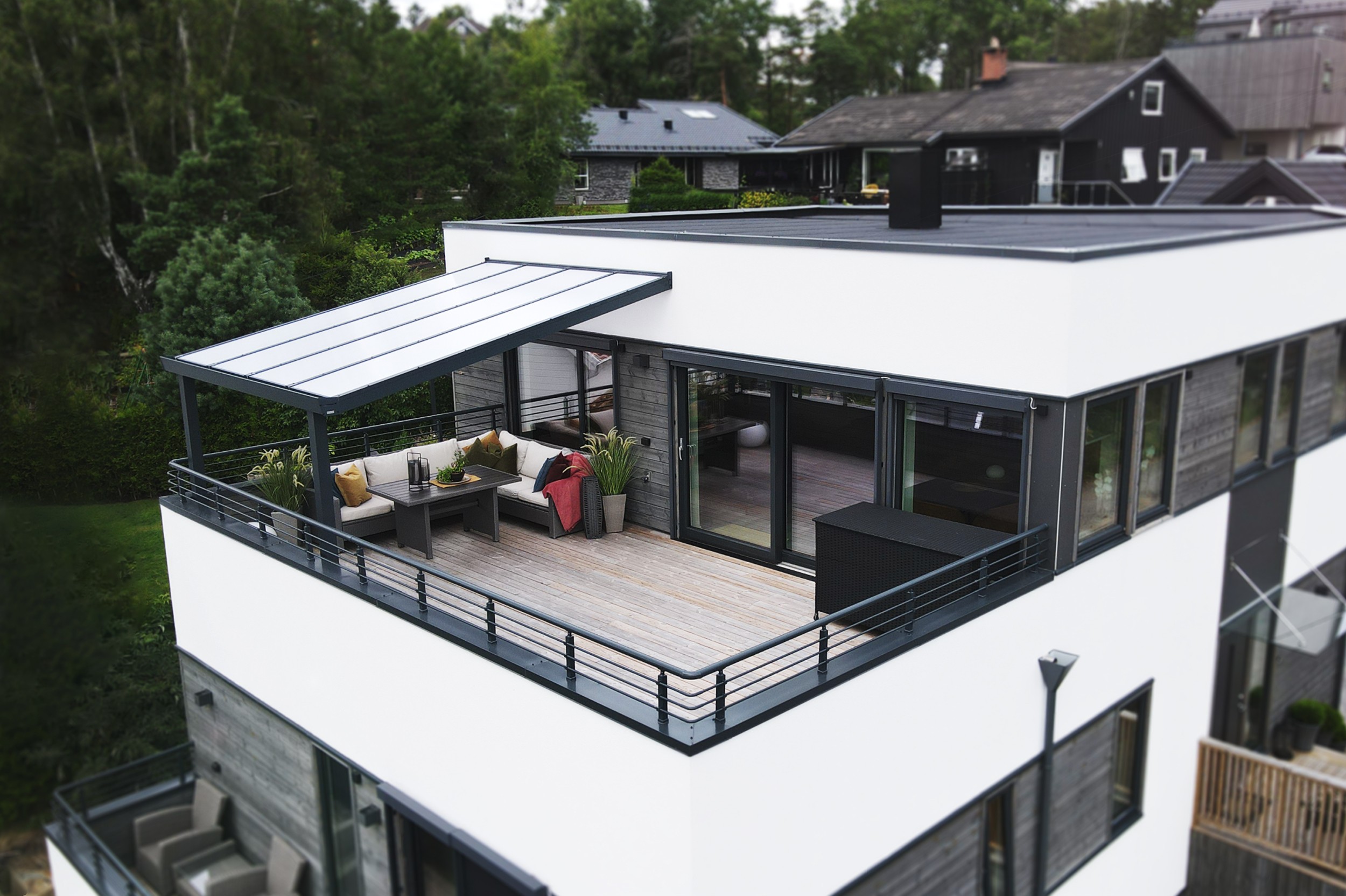 Et terrassetak gir deg et beskyttet uterom som gjør terrassen mer brukervennlig gjennom store deler av året. Det skjermer mot sol, regn og vind, samtidig som du beholder følelsen av lys og åpenhet.